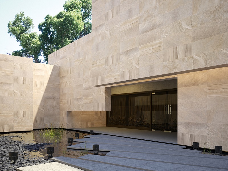 Ambienti në foto është shumë i veqant, këtë e bejnë qeramikat dekoruese me ngjyrë te kafët te mbyllt që janë te vendosura në terësi te murit. Qendrueshmeria e ketyre qeramikave eshte ajo qe i bën ato edhe më të speciale per perdorimin e tyre ne ambiente te ndryshme.